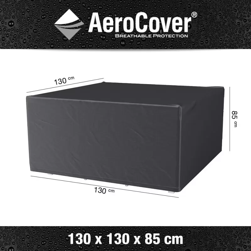 Tuinmeubelhoes voor tuinset van AeroCover 130x130cm. Ademende tuinsethoes o.a. geschikt voor vierkante tafels met stoelen. AeroCovers zijn ademend, waterbestendig, reduceren condensvorming en gaan schimmelvorming tegen. De stof heeft een hoge kleurechtheid door de door en door geverfde vezels.