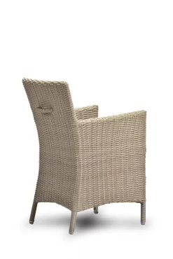 Prachtige kuipstoel van vlechtwerk met aluminium onderstel. Deze stoel heeft een fijn model en is voorzien van een handvat aan de achterkant waarmee je de stoel gemakkelijk naar achter kunt schuiven. De stoel wordt geleverd inclusief antraciet kleurige zitkussen.
