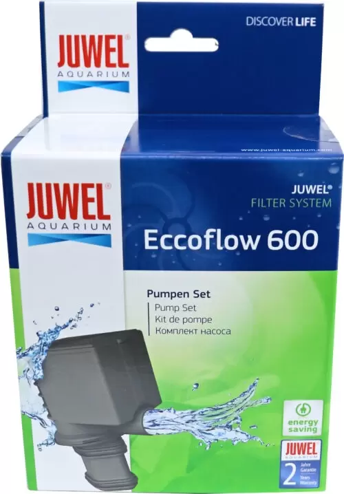 Voor: Rio 180, Rio 200, Rio 240, Vision 180, Trigon 190, Panorama 80, Panorama 100, Panorama 200, Delta 80, Delta 100 en Lido 200. JUWEL Eccoflow-pompen zijn de nieuwe generatie JUWEL-stromingspompen. In alle Eccoflow-pompen zijn de impellers dubbel gelaagd en precies afgestemd op de respectievelijke motorcapaciteit. Dit maakt de bijzondere werkingsstilte en lage stroomopname van de Eccoflow-pompen mogelijk. Door de apart verkrijgbare keramische assen zijn JUWEL Eccoflow-pompen ook ideaal voor het gebruik in zout water. Door het nevenstroomprincipe wordt de rotorkamer permanent en automatisch gereinigd. Natuurlijk voldoen de JUWEL Eccoflow-pompen aan de strengste veiligheidsstandaarden en zijn ze TÜV/GS-gecertificeerd. JUWEL Eccoflow-pompen zijn in de capaciteitsklassen 300, 500, 600, 1000 en 1500 l/u verkrijgbaar en geoptimaliseerd voor het gebruik in het JUWEL-filtersysteem.