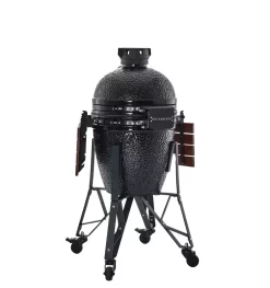De nieuwe The Bastard Medium is de perfecte kamado om te barbecueën voor 8 tot 10 personen. Maak overheerlijke en malse vlees-, vis- of groente- gerechten met een pure smaak zoals u alleen bij The Bastard proeft. Compleet met onderstel, zijtafels, plate setter, RVS houtskoolmand en RVS asbak lifter. Het grillrooster van The Bastard Medium is van extra dik (6 mm) roestvrijstaal gemaakt. Met de gietijzeren precisie-top is de temperatuur in de kamado nauwkeurig en eenvoudig te regelen. Het scharniersysteem zorgt ervoor dat The Bastard super makkelijk is te openen, en te sluiten. The Bastard wordt compleet geleverd met plate setter, RVS houtskoolmand en RVS asbak lifter. Met deze handige accessoires bent u in één keer klaar om aan de slag te gaan met The Bastard. Het onderstel van The Bastard is gemaakt van stevig gegalvaniseerd plaatstaal. The Bastard is nu zo stabiel dat hij gemakkelijk door de tuin is te rollen. De tafels zijn zo steenhard dat The Bastard vier seizoenen buiten kan staan, voor vele jaren. The Bastard is gemaakt van industrieel keramiek. De keramische barbecues van The Bastard staan bekend om het perfect vasthouden van warmte, een constante temperatuur en een goed te regelen luchtcirculatie. Het keramiek is bestand tegen hoge temperaturen waardoor er vele kookmethodes mogelijk zijn. U kunt grillen, roken, stomen, bakken en low-slow barbecueën met The Bastard. The Bastard is een Dutch design van hoogwaardig cordieriet keramiek met 20 jaar garantie. Lekker ongecompliceerd, stoer, kwalitatief, veelzijdig en voor iedereen het hele jaar door. Specificaties The Bastard Medium Complete 2021 Doorsnede: 48 cm Doorsnede grillrooster: 42 cm Hoogte 114 cm Extra dik roestvrijstalen rooster (6 mm) Gietijzeren topventilatie schijf Onderstel Zijtafels Bamboe handvat Keramische vuurkorf en vuurring Thermometer Metalen onderdelen van gehard staal Inclusief plate setter, RVS houtskoolmand en RVS asbak lifter