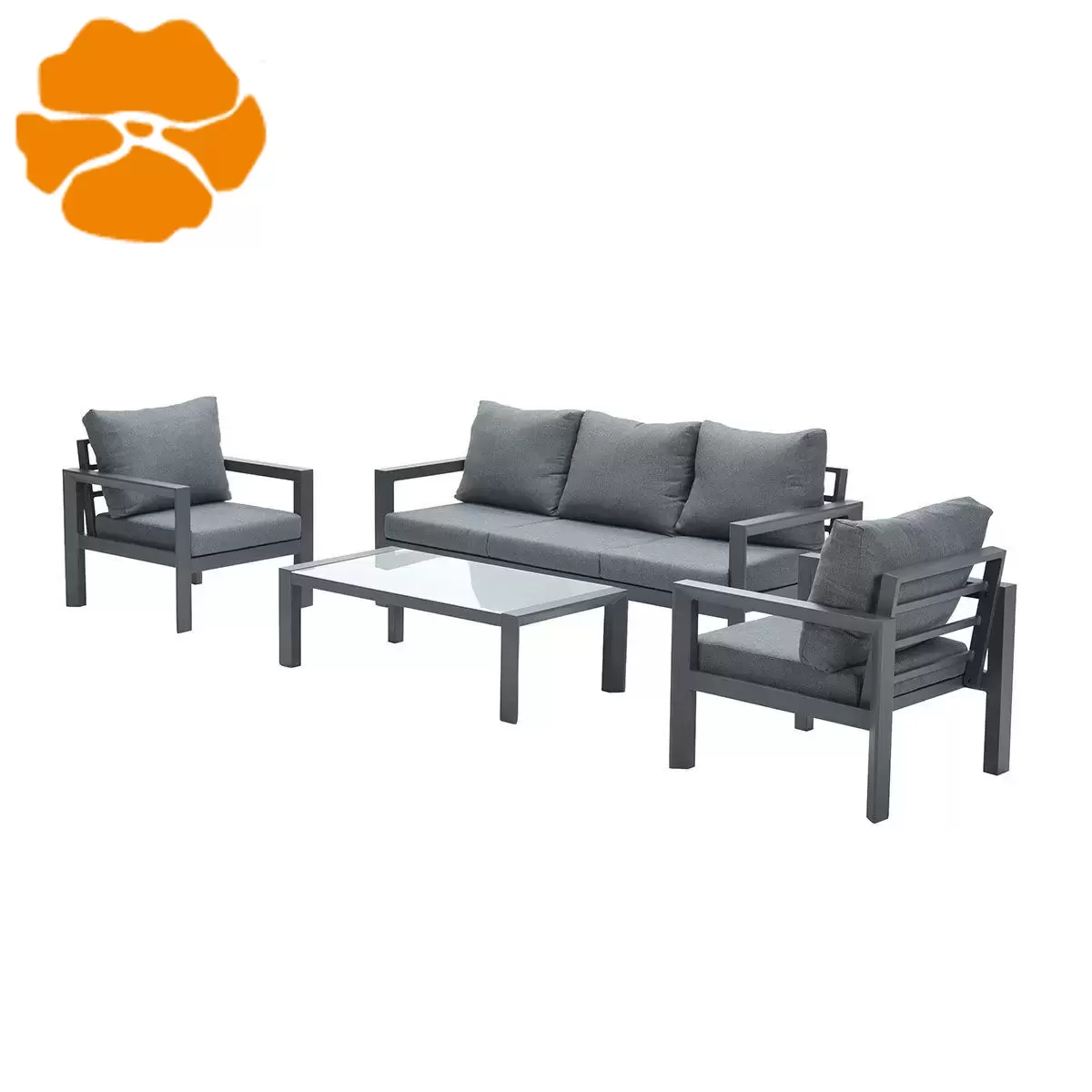 De Zion loungeset is een compacte en moderne stoel-bank loungeset. Het strakke ontwerp in combinatie met het aluminium frame zorgen voor een eigentijdse look. De Zion 4-delige loungeset bestaat uit een driezitsbank, twee loungestoelen en een salontafel. Ook de kussens worden meegeleverd. Het frame van de set is volledig gemaakt van gepoedercoated aluminium. Aluminium is onderhoudsvriendelijk en weerbestendig. De loungekussens hebben een afritsbare kussenhoes en waterafstotende coating. Afmeting van de bank is 194 x 75 x 72 cm, de stoelen zijn 75 x 74 x 72 cm en de tafel is 120 x 60 x 38 centimeter.